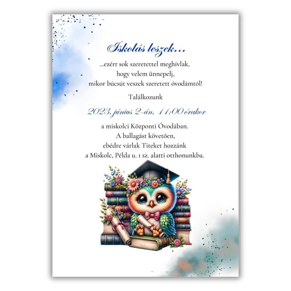 Baglyos ballagási meghívó ovisoknak, bölcsiseknek